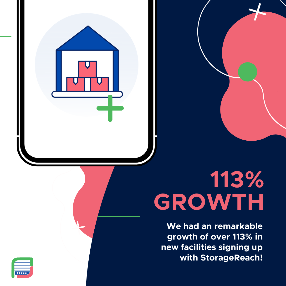 - We saw 113% growth in new facilities joining the StorageReach community. Truly a testament to how essential review management has become for operators striving to stand out in a competitive market.