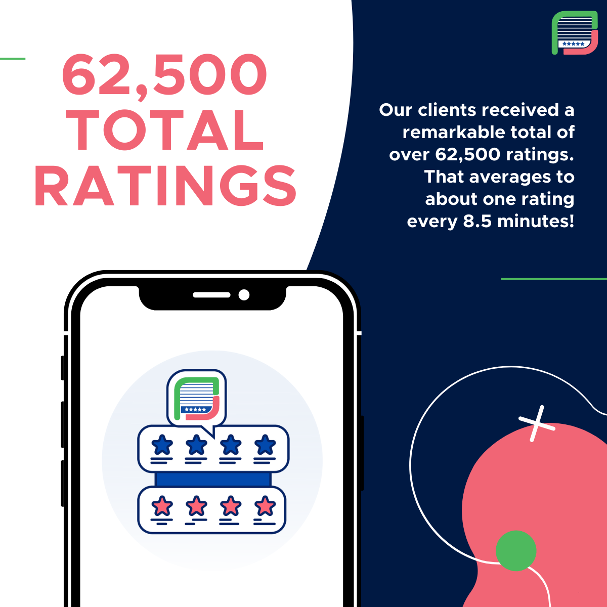 - 62,500 total ratings received: Rich feedback that informs decisions and improves operations.