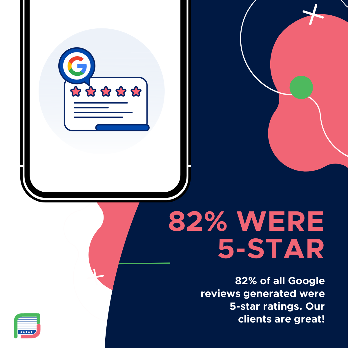 - An impressive 82% of all Google reviews generated were 5-star ratings. Proof that the facilities leveraging StorageReach are not just getting more reviews, but better ones.
