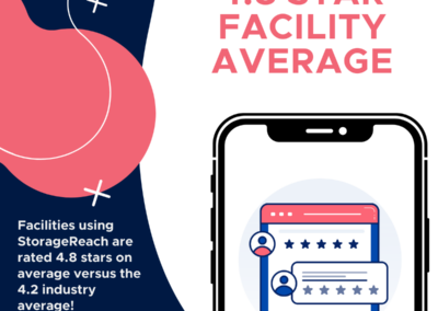 - Facilities using StorageReach are rated 4.8 stars on average compared to a 4.2 industry average, showing how proactive reputation management can elevate your brand’s online presence.